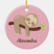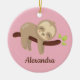 Tener este adorable adorno perezoso en tu árbol de Navidad seguro que tendrá algunas sonrisas. Con su adorable perezoso colgado en un árbol, en un fondo rosado, y personalizado con tu nombre, seguro que será de un tipo.