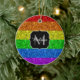 Personaliza el ornamento de árbol de Navidad con tu nombre inicial. Maravillosa bandera LGBT con vibrantes chispas purpurinas rojas, naranjas, amarillas, verdes, azules y violetas. *foto de chispas, no purpurina real!