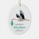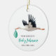 ¡Estamos esperando! Ornamento cerámico de Invitación de cigüeñas neutra por género. Personalice la información de su personalizado en la parte frontal y posterior.