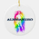 Este adorno de cerámica blanca exhibe maravillosamente la emblemática estatua de David con un vibrante lavado de color arcoiris, añadiendo un toque moderno y colorido a esta histórica obra maestra. Inspirado por la belleza artística de Florencia, Italia (Florencia, Italia), este adorno es el homenaje perfecto tanto al arte como al Orgullo LGBTQ. Ya sea para Navidades, cumpleaños o cualquier ocasión especial, este adorno personalizado hace un regalo divertido y reflexivo para los que celebran la inclusión y la diversidad. Colóquelo orgullosamente en su árbol o muéstrelo como un querido aguijón que simboliza el amor, la aceptación y el patrimonio artístico.