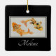 Ornamento personalizado con el ilustracion de un par de peces koi dorados nadando juntos. Fondo negro.