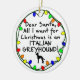¡Estimado Santa, todo lo que quiero para el navidad es un galgo italiano! Los ornamentos del amante del perro del día de fiesta de la diversión y otros artículos son anillados en una cadena de luces coloridas de Navidad, y un pequeño dibujo de la raza del perro de un niño. Extremadamente lindo, perfecto incluir su galgo italiano en las vacaciones.