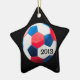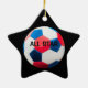 Este adorno saluda al(los) jugador(s) estrella(s). Una gran idea de regalo para tu equipo "todo estrella" o "toda estrella". Ideas únicas de regalo de fútbol en blanco y azul rojo. Los regalos de la pelota de fútbol de calidad son difíciles de encontrar. Aquí hay diseños únicos con fotos digitales de alta resolución para hacer ese regalo único. Éstos son completamente personalizables al agregar un nombre o cambiar el tipo que ya se ha agregado. El tipo se puede cambiar por color, fuente, tamaño y ubicación. Añadir un nombre de equipo, liga o año de juego.
