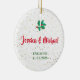 Este sencillo y clásico adorno navideño de Engagement está decorado con pequeñas estrellas doradas en un fondo blanco y una estampilla de acuarela de holly. Puede personalizar cambiando los nombres y la fecha.
