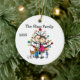 A cute, fun ceramic ornament featuring a stick figure expectant couple, toddler boy, a large brown dog, small white dog, holiday tree, and you can add your names or surname and the add the current year!