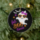 Este diseño de las vacaciones presenta un bonito fantasma con gafas de sol y un arco en su pelo que vuela entre las estrellas con murciélagos y el texto "fab BOO Lous" en la moderna y popular tipografía púrpura y naranja #halloween #feriados #temporada #festive #boo #fantasma #mono #halloweenornaments #ornaments #halloweenstyle #hallowenstyle diseño, diseño, diseño.