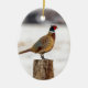 Esto es un faisán en Wyoming, los E.E.U.U. que se colocan en un poste de la cerca en el invierno. Hay nieve en el fondo.