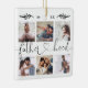 Envía un hermoso regalo personalizado a tu papá (padre) que él apreciará para siempre. Ornamento especial de collage de fotos familiares personalizadas para mostrar sus propias fotos y recuerdos familiares especiales. Nuestro diseño presenta un sencillo diseño de cuadrícula de 6 fotos con "Paternidad" diseñado en un hermoso estilo de escritura negra manuscrita. Año personalizar, al revés del personalizar adorno con los nombres de los miembros de la familia.