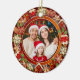 Adorno De Cerámica Family Photo, Gingerbread & Poinsettia Holiday