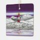 Un ilustracion paisajístico del faro de Les Eclaireurs en Argentina. Este diseño tiene un cielo nocturno morado y una cordillera que refleja en el océano tranquilo.