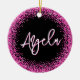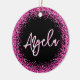 Create your own girly glam Christmas ornament featuring the background color of your choice and a round faux bright hot pink glitter border.