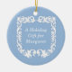 Un adorno azul de doble cara con una arcilla falsa en blanco crujiente. Añade tu propio mensaje personalizado y haz de este un gran regalo de vacaciones!