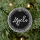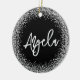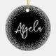 Create your own girly glam Christmas ornament featuring the background color of your choice and a round faux silver grey glitter border.