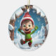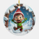 Adorno De Cerámica Felices Navidades Elf disfrutando el invierno.