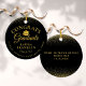 Adorno De Cerámica Felicitaciones de graduación de gorra negra y dora