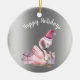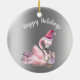 Adorno De Cerámica Feliz Fiesta Flamingo tropical de Navidad