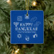 Feliz Hanukkah, regalo de nombre de familia personalizado favorece el ornamento cerámico de vacaciones. ¡Feliz Hanukkah, Feliz Chanukah, Hanukkah Sameach!, Chag Sameach!, Chag Urim Sameach. Azul y blanco