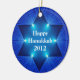 Un luminoso, único y hermoso adorno de Hanukkah con la Estrella de David y luces iluminadas en un fondo azul con el texto "Feliz Hanukkah 2012" en un lado en letras blancas. Cambie fácilmente el texto o elimínelo si no es necesario. Habitación en la parte posterior para personalizar si lo desea. ¡El perfecto recuerdo de Hanukkah para 2012!