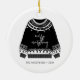 Ornamento navideño navideño con las palabras "Feliz Todo" en un suéter Navidad de aspecto festivo. Personalice el texto personalizado anterior. También puede cambiar el color de fondo. Puede encontrar elementos de coordinación adicionales en nuestra colección "A Modern Illustrated Holiday".