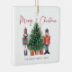 Este adorable y único adorno de fotos navideñas con el pepino de las fiestas Merry Christmas cuenta con soldados de juguetes caseros pintados a mano alrededor de un hermoso árbol y texto para agregar su nombre y año familiar. La parte posterior incluye una foto para personalizar. Buscar elementos coincidentes en la colección Navidades Holiday Nutcracker.