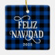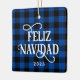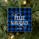 Adorno De Cerámica Feliz Navidad Blue Buffalo Plaid Family Photo