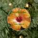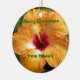 Mele Kalikimaka. Feliz Navidad en Hidalgo. Una flor tropical brillante - un magnífico hibisco rojo y de color mango - y un texto de personalizable en este adorno floral navideño de flores de Hawái.