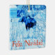 Imagen en azul y blanco de un alce de vaca en un entorno urbano durante el invierno. Lectura de texto en español, "Feliz Navidad" aparece en rojo. Moose son residentes de todo el año en muchas comunidades de Alaska. Aquí en Anchorage hay unos 1500 animales, junto con lobos, osos marrones y otros animales salvajes. Por lo general se comportan bien. A menudo cruzan las calles en los pasos de peatones después de esperar una señal de marcha.