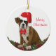 Adorable cachorro de Boxer con sombrero de Santa y adorno de arrecife para navidades. Pintura digital de Inge Lewis. Encontrará más elementos coincidentes en la tienda ingeinc.com. Encontrará más elementos coincidentes en la tienda ingeinc.com.