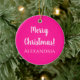 Manténgalo simple con este adorno de árbol de Navidad personalizado y festivo, en rosado caliente de tendencia. Tiene el mensaje, "Feliz Navidad" en blanco y elegante guión de tipografía. O cambiarlo fácilmente personalizando el diseño agregando tu propio texto. Cambie el color con un paso más utilizando la herramienta de edición de diseño. Es un regalo personalizado perfecto para Navidades o para Navidades, o ideal como una nueva adición a la decoración de los árboles de navidad y la decoración de la casa festiva de esta temporada! Feliz Navidad! Si necesita ayuda con la personalización, productos coincidentes o un correo electrónico de diseño personalizado: ursuladawnmoon@gmail.com