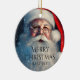 Feliz Navidad Santa Festive Winter Holiday Ornaments cuenta con Santa Claus con rociadas de nieve con el texto "Feliz Navidad" y tu nombre personalizado en el frente. Perfecto para Navidades tarjetas de felicitación de vacaciones para familia y amigos. Diseñado por © Evco Holidays www.zazzle.com/store/evcoholidays