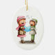 Cute Christmas ornament with an illustration of a girl and a boy singing carols. Personalize the text with your own message. Illustrated and designed by Patricia Alvarez.