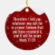 Festive Snowy Motivational Biblical Text Ceramic Ornament. Elevate your Christian holiday with this devotional berry red snow-capped Christmas decoration, featuring a serene mountain scene and the uplifting biblical phrase "Faith Moves Mountains" in crisp white on the front. Sparkling accents resembling falling snow creates a magical winter wonderland vibe. Flip the Xmas decor over to reveal the same captivating background with the inspirational Bible Scripture verse: "Therefore I tell you, whatever you ask for in prayer, believe that you have received it, and it will be yours -- Mark 11:24" in customizable white words—perfect for personalizing. Crafted for lasting joy, this timeless piece blends holy spirit and cheer seamlessly.