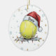Festive Tennis Ball Holiday Design with Snowflakes and Sparkles Ceramic Ornament