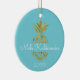 Mele Kalikimaka Navidades del Relieve metalizado Faux Gold y Aqua Blue Pineapple Ornament. Este ornamento de Navidad hawaiano es perfecto para un árbol tropical de Navidad. Póngase en contacto con el diseñador para obtener elementos coincidentes.