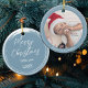 El primer ornamento de cerámica fotográfica de Navidad del bebé moderno. ¡Celebra la primera Navidad de un bebé con este adorable adorno de árbol personalizado! Este keepsake presenta la foto de su bebé enmarcada en un encantador borde circular azul-bebé festivo con estrellas junto con el nombre y los "primeros Navidades" bellamente curvados en la parte inferior en una letra manuscrita. El dorso del adorno tiene "Feliz Navidad" en escritura moderna junto con el año, ambientado con un fondo de pinceles suaves y azules, lo que lo convierte en una pieza eterna para valorar año tras año. Perfecto para los padres y los miembros de la familia, este adorno es una manera sincera de recordar esta preciosa temporada de vacaciones.