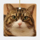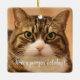 Ornamento cerámico de vacaciones de Mascota de gato personalizado: espléndido gato de tabby mirando a la cámara para la foto. "Tener unas vacaciones perfectas" se dirige al frente, el texto es totalmente editable, y también lo es la foto del gato, para que puedas usar la foto de tu propio gato. Este adorno de gatos hace un gran regalo personalizado a los Navidades para los padres de gatos y también es una gran manera de usarlo como un monumento a los mascotas.