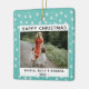 Festive Fun Fun Turquoise Patrón de fotografía Ornamento cerámico. Diseño divertido y festivo con estrellas blancas en un fondo turquesa. Añade tu foto y personalizar el texto.