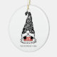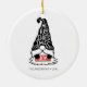 Ornamento navideño navideño con las palabras "Feliz Navidad" en el gorra de un Gnome Navidad. Personalice el texto personalizado anterior. También puede cambiar el color de fondo. Puede encontrar elementos de coordinación adicionales en nuestra colección "A Modern Illustrated Holiday".