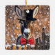 Un adorable y divertido adorno de un burro con sombrero de punta y corbata de arco rojo. Él mira su cerca mientras cae la nieve. Una manera divertida de decorar tu árbol a estos Navidades o de regalar como un regalo divertido.