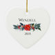 Una audaz silueta de un Chihuahua de cabello largo, con arreglos de poinsettia acuarela en la parte delantera y trasera. Pon el nombre y la fecha de tu perro personalizado en la parte de atrás. Hace un regalo maravilloso para cualquier amante de los perros.