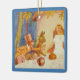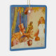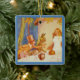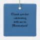 El adorno de cerámica cuadrada con una imagen vintage del fiesta de té del Odio con Alicia, el Odio, la Pena de Marzo y Dormouse con un borde azul. La parte de atrás es un texto azul de coordinación con personalizable que dice "¡Gracias por celebrar conmigo en el país de las maravillas!" Ver toda la colección de ornamentos de Wonderland en los TOUCHES ESPECIALES | Sección de favoritos de partido.