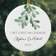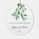 Adorno De Cerámica First Christmas Engaged Mistletoe Photo