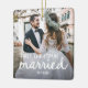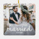 This trendy and whimsical holiday ornament says "First Christmas Married" with causal, hand-drawn lettering for a chic and up-to-date look. Add two of your favorite wedding photos for a stylish keepsake of your big day!