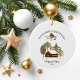 Soar into the season with this whimsical vintage style Aviation themed Christmas ornament! Design features a classic Cessna airplane flying in the sky, proudly hauling a fully decorated Christmas tree strapped atop its wings. Below, a house surrounded by pine trees and snow, while “OUR FIRST CHRISTMAS” shines retro lettering above the cute scene.