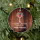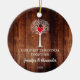 Our first Christmas together ornament. Rustic dark wood background with white love tree illustration.