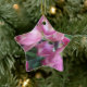 Este adorno en forma de estrella tiene orquídeas rosas por un lado y un árbol de Navidad por el otro