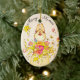 Adorno De Cerámica Flor y conejo de Feliz Navidad