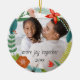 Este hermoso ornamento fotográfico de vacaciones tiene un marco de flores (conformado por flores pintadas a mano, hojas, arcos de pino, bayas y brotes). Todas las obras de arte creadas exclusivamente por Orabella Prints, no encontrarás este diseño en ningún otro sitio. :)