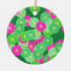 Adorno De Cerámica Flores Art Decó en tonos verdes y fucsia