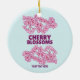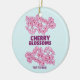 Este diseño tiene dos ramas de flores de cerezo rosa. Un diseño temático primaveral para cualquiera que ame los cerezos, o quizás para un festival de flores. Un ilustracion vector con la palabra cerezo floreciendo en el medio.